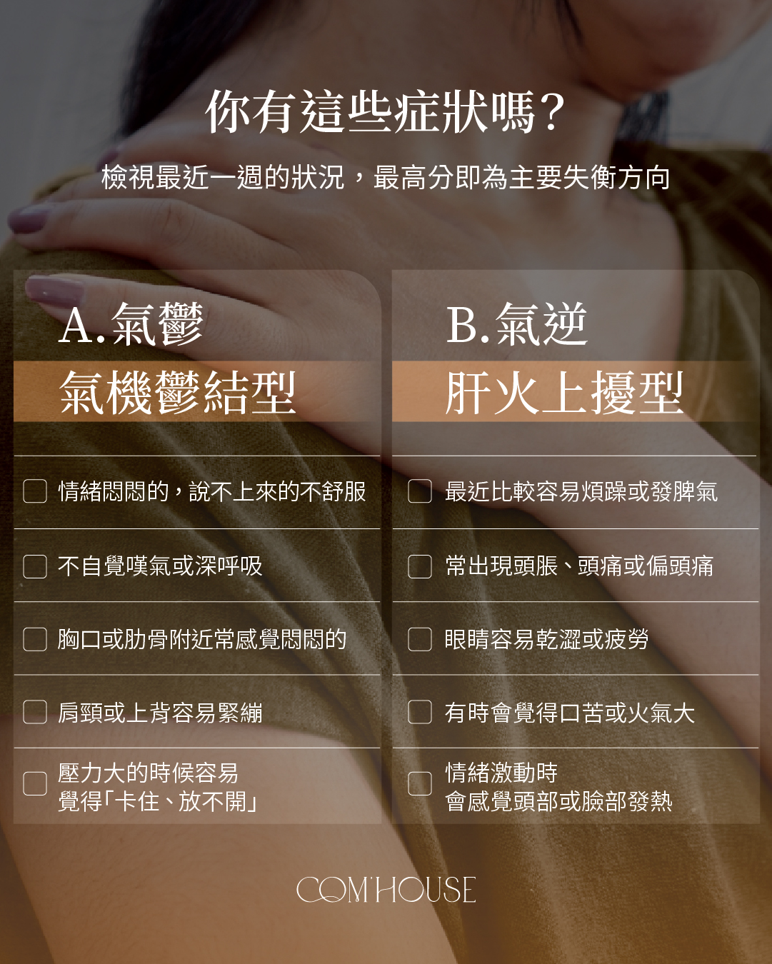 A. 氣鬱型:像是一口氣悶在胸口