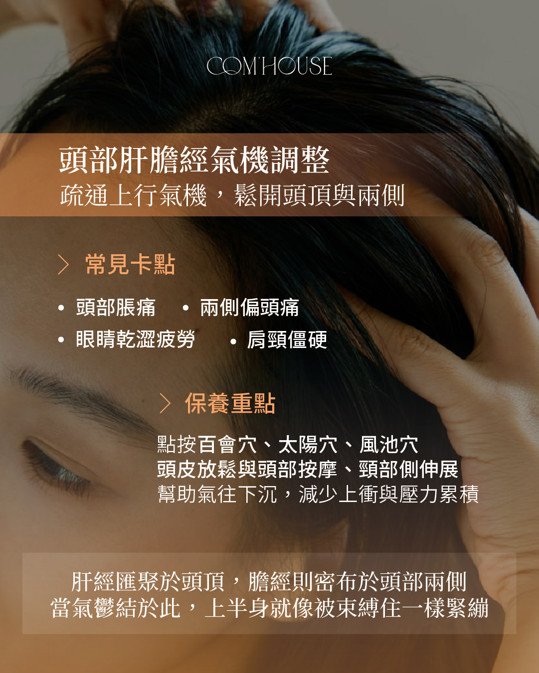 ① 疏通兩側膽經(偏頭痛、焦慮):